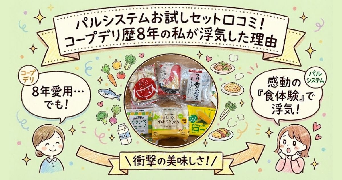 パルシステムのお試しセットを実際に食べた詳しい感想は、パルシステムお試しセット口コミ!コープデリ歴8年の私が浮気した理由で紹介しています。